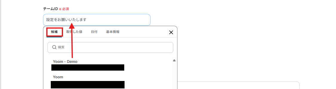 チームIDは、枠内をクリックし表示される候補から選択しましょう。