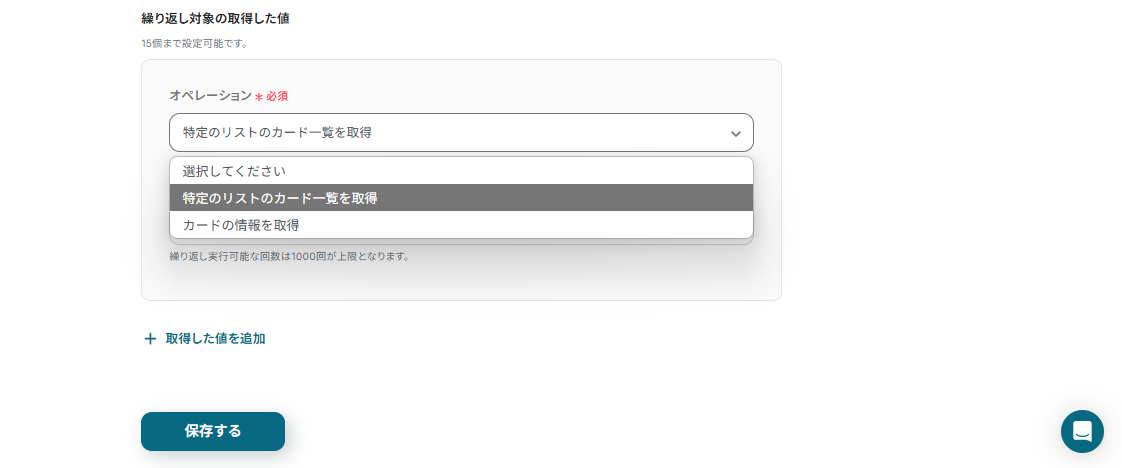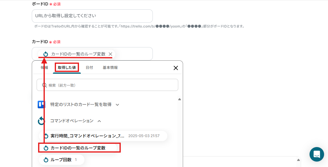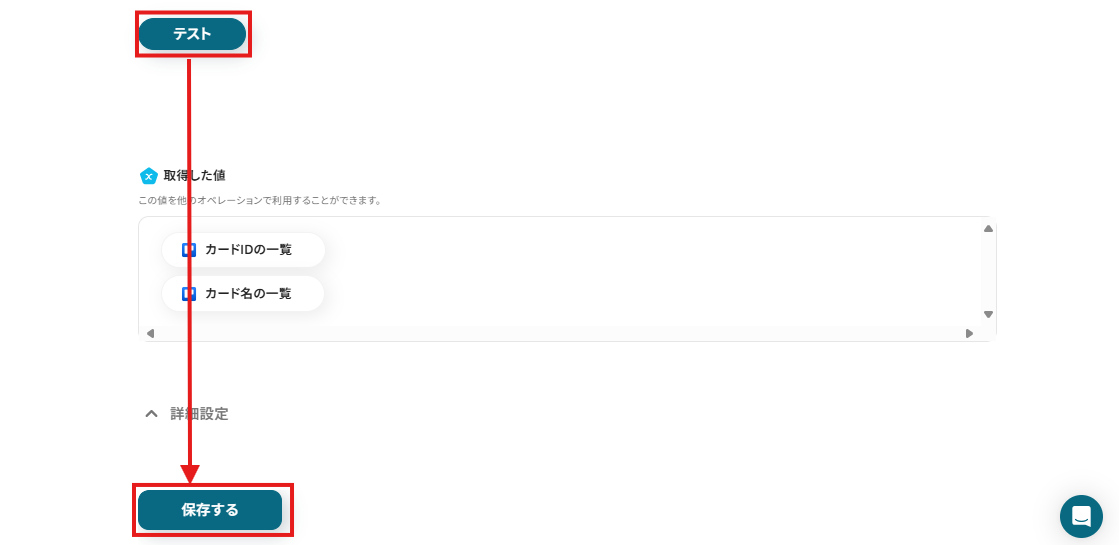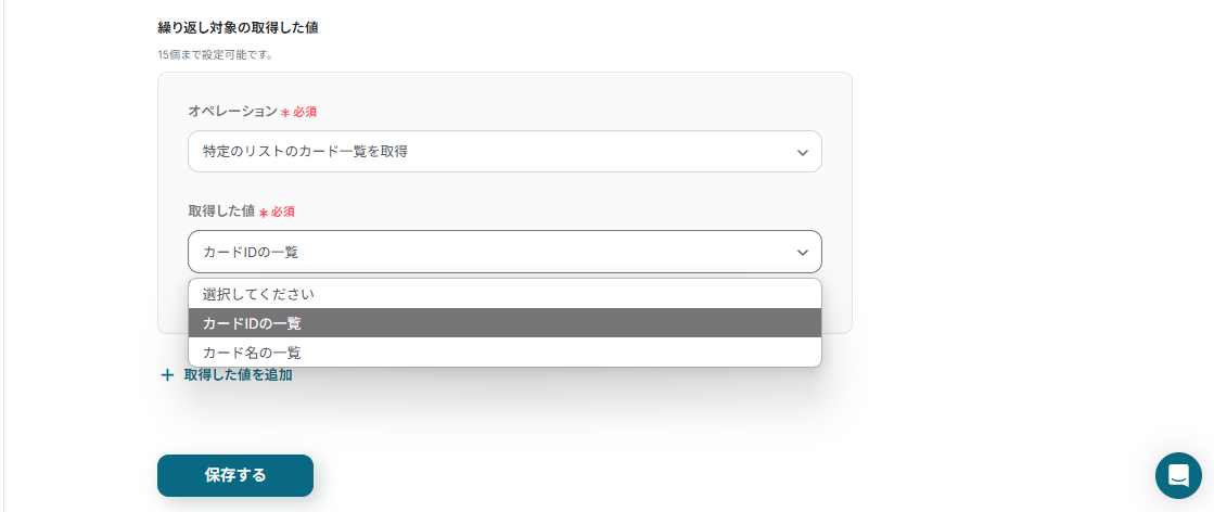 取得した値も同様に設定済みです。 「カード一覧のID」が選択されているのを確認したら、「保存する」をクリックしましょう。