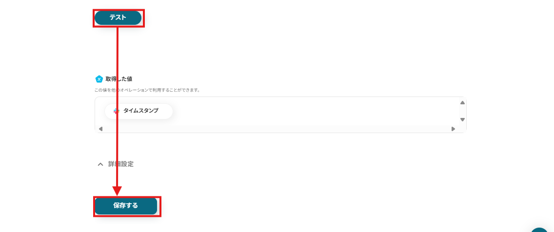 設定が完了したら、テスト実行後、「保存する」をクリックしましょう。