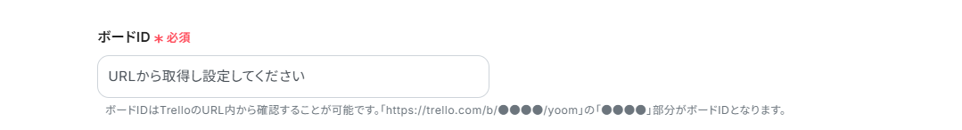 ここで設定したリストに紐づくカードの一覧を取得することができますよ! ボードIDは、枠外の注釈を参考に、TrelloのURL内から確認し入力してください。