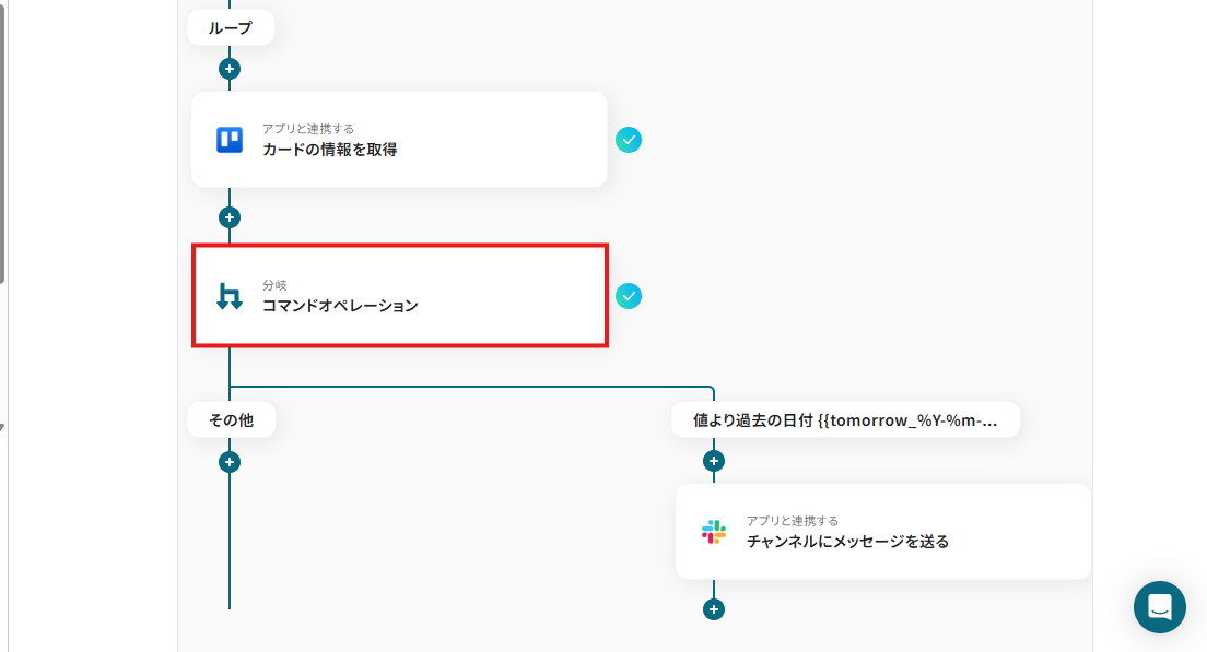 次は、「コマンドオペレーション」という項目を設定していきましょう! ※注意事項:分岐機能は、チームプラン・サクセスプラン限定の機能です。