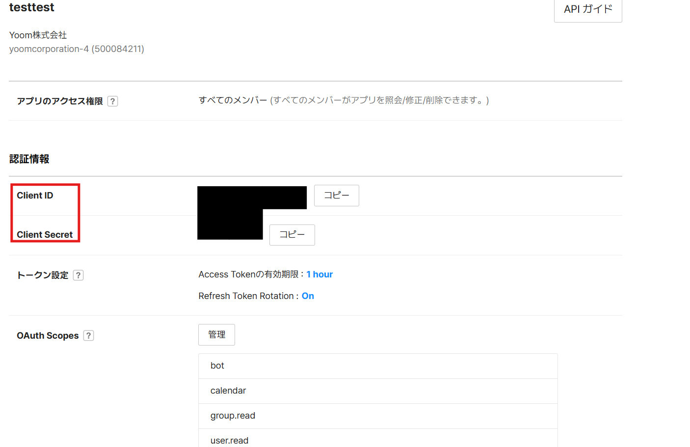 スコープはLINE WORKSのご利用プランによって異なるので、該当するものを設定してください。
