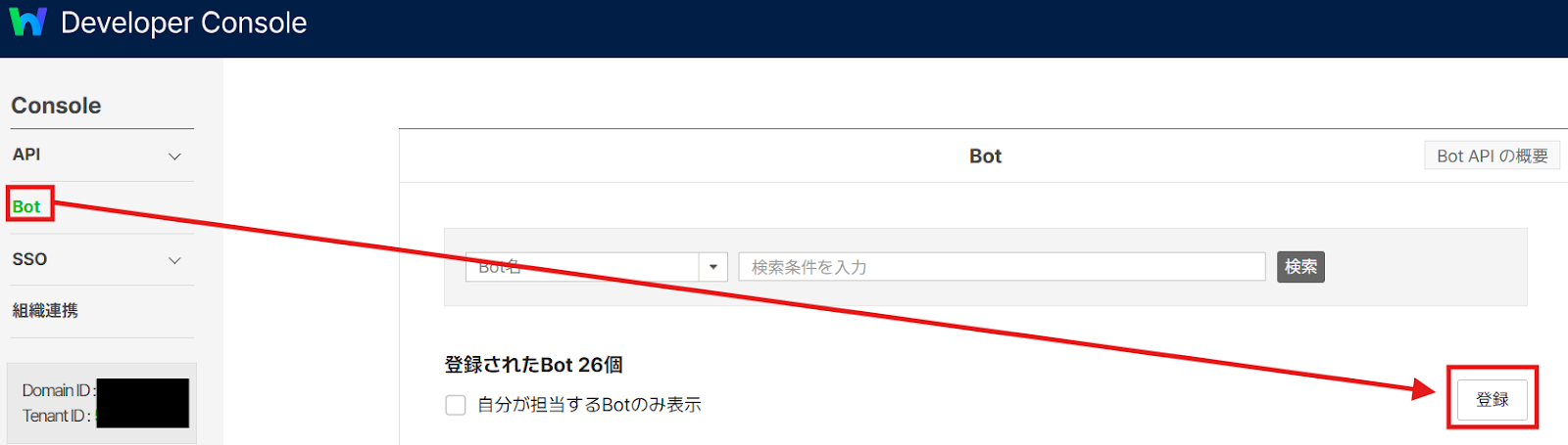 Developer Console を開き、Botを作成しましょう。 作成方法はこちら を参考にしてください。