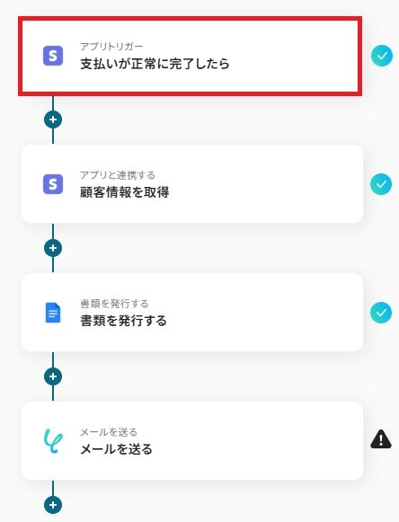 それではここから代表的な例として、Stripeで支払い情報が作成されたら、その情報をもとにPDFの領収書を自動で作成し、メールで送信するフローを解説していきます!