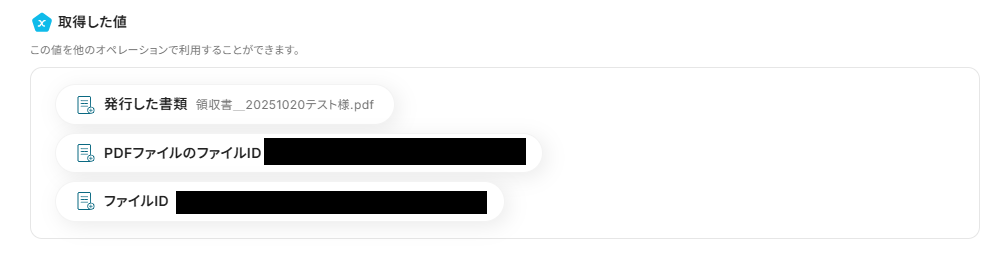 取得した値は、後続のオペレーション設定時の値として利用でき、フローボットを起動する度に、変動した値となります。詳しくはこちらをご覧ください。