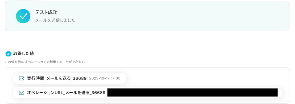 取得した値とは、トリガーやオペレーション設定時に、「テスト」を実行して取得した値のことを指します。