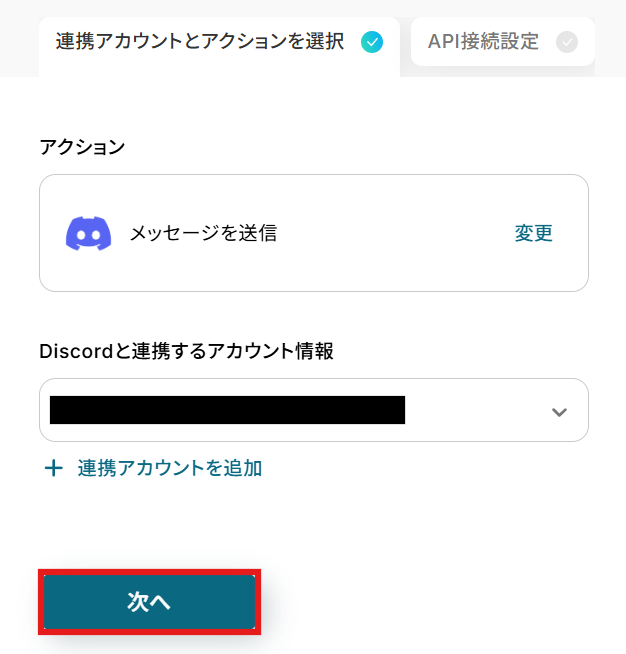 ステップ6:Discordでメッセージを送信するアクション設定