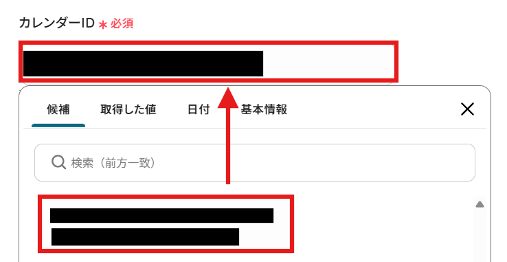 カレンダーIDを入力します。