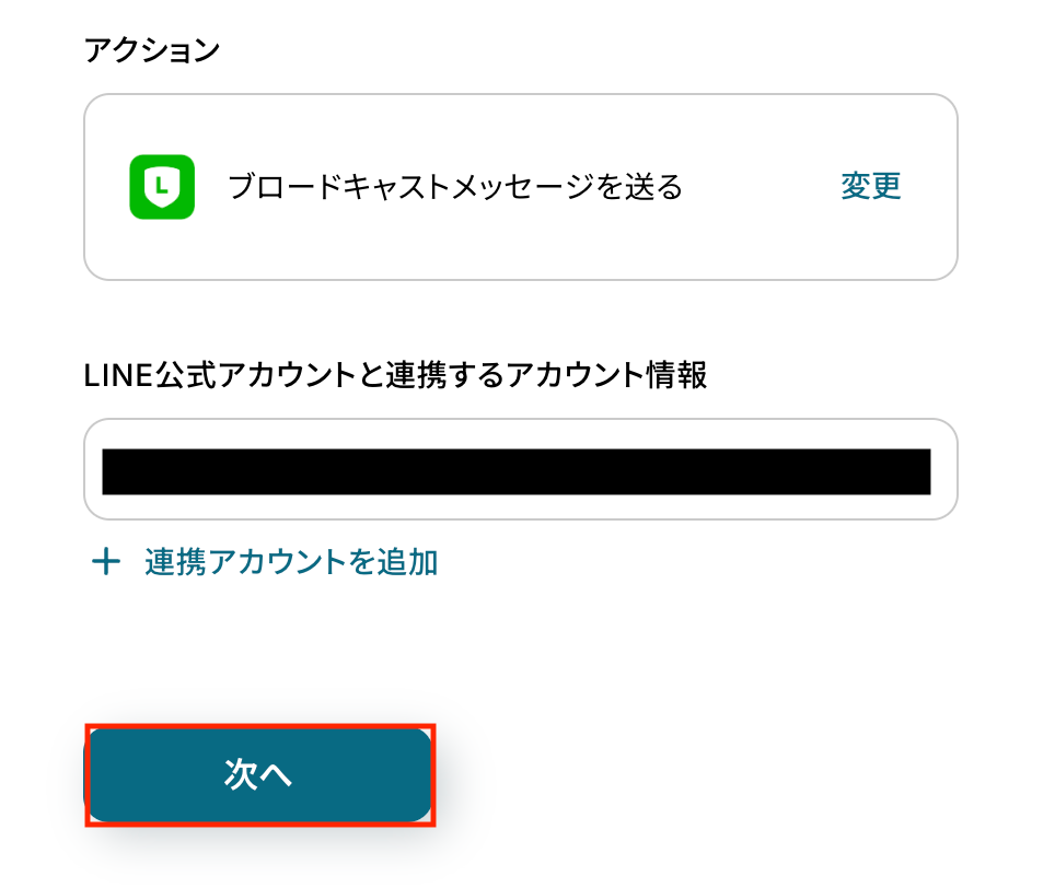 LINE公式アカウントと連携するアカウント情報に問題がなければ、「次へ」をクリックします。