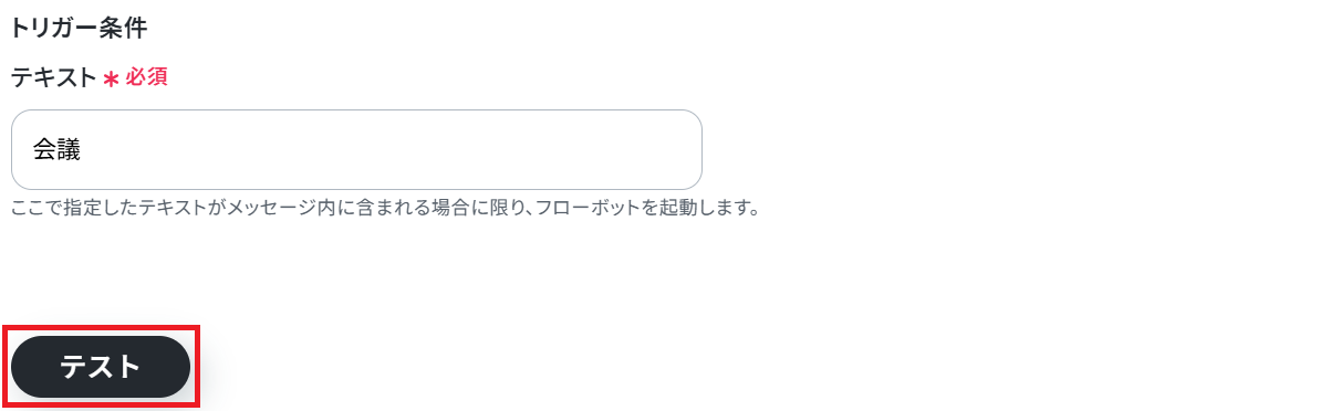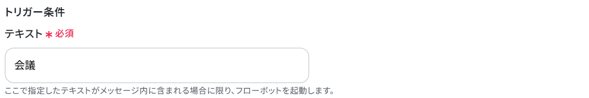 続けて、トリガー条件 となるテキスト を入力しましょう。