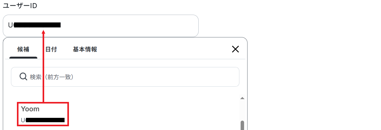 ユーザーID …指定したユーザーのメッセージのみをフローボットの起動対象にできます。候補から選択しましょう。
