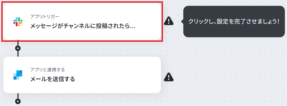 はじめに、SendGridとSlackをYoomと連携します。 次に、トリガーでSlackを選択し、「メッセージがチャンネルに投稿されたら(Webhook)」というアクションを設定します。 最後に、オペレーションでSendGridの「メールを送信する」アクションを設定し、Slackの投稿内容などを基にメールが送信されるように設定します。 ※「トリガー」:フロー起動のきっかけとなるアクション、「オペレーション」:トリガー起動後、フロー内で処理を行うアクション■このワークフローのカスタムポイント