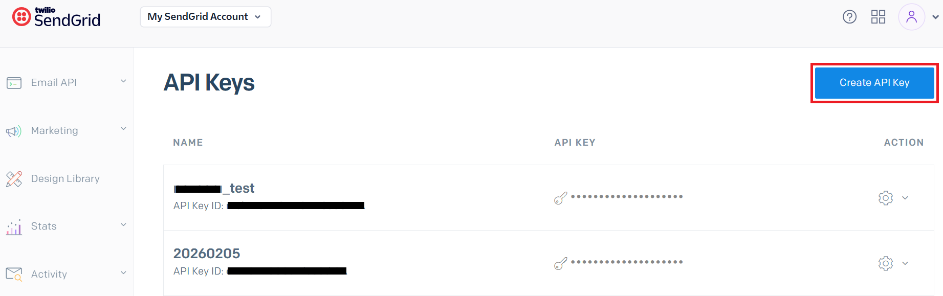 SendGridのマイアプリ登録方法 まず、SendGrid管理画面の