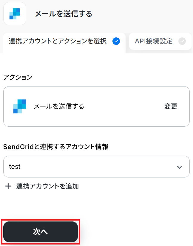 ステップ3と同様、アクションは「メールを送信する」のまま「次へ」をクリックします。