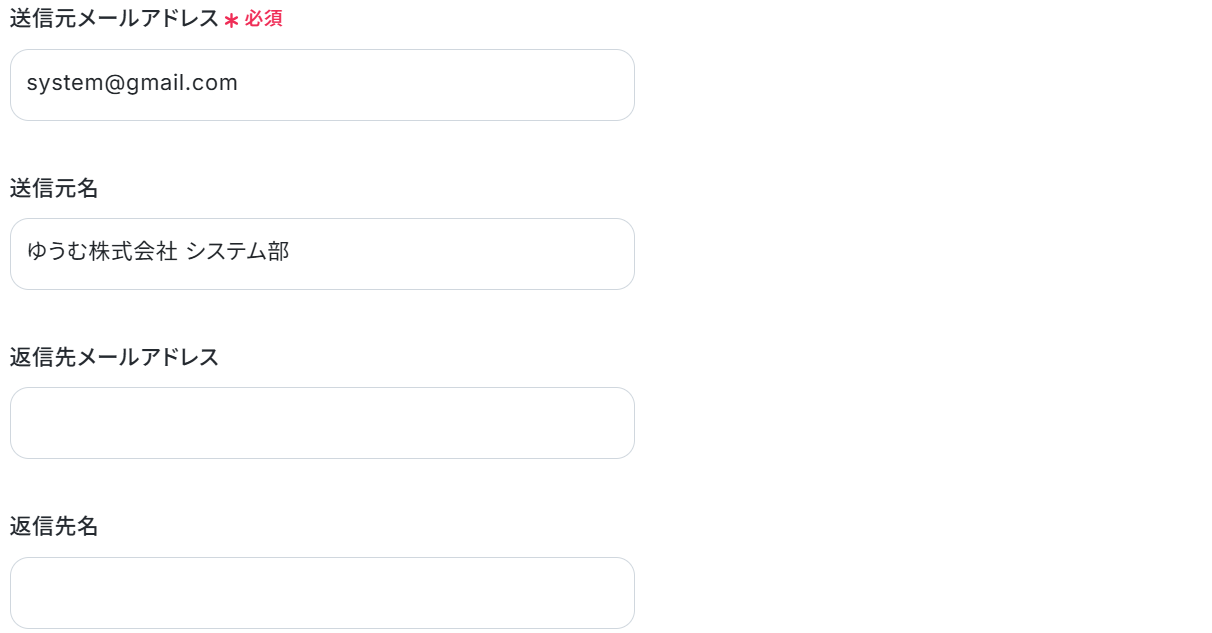 次に送信元メールアドレス を設定してください。 宛先名と同じく、送信元名 も設定できます。