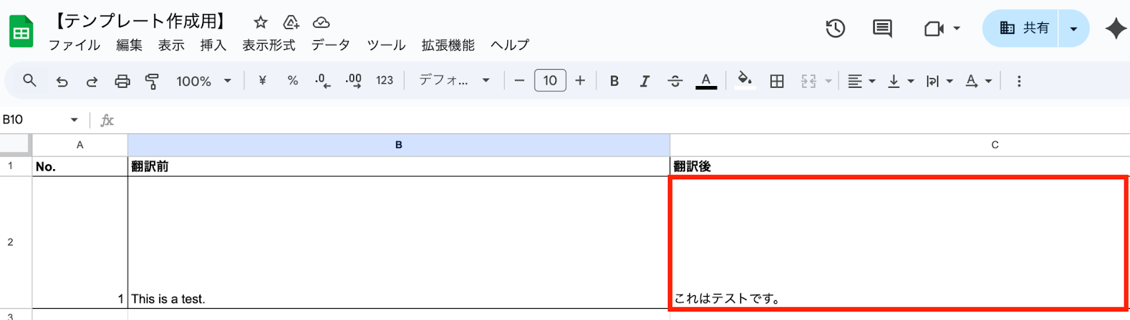 テストが成功し、翻訳結果がGoogle スプレッドシートに反映されていればOKです!