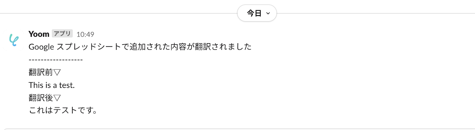 以上が、Google スプレッドシートで追加された内容を翻訳しSlackに通知するための方法です!