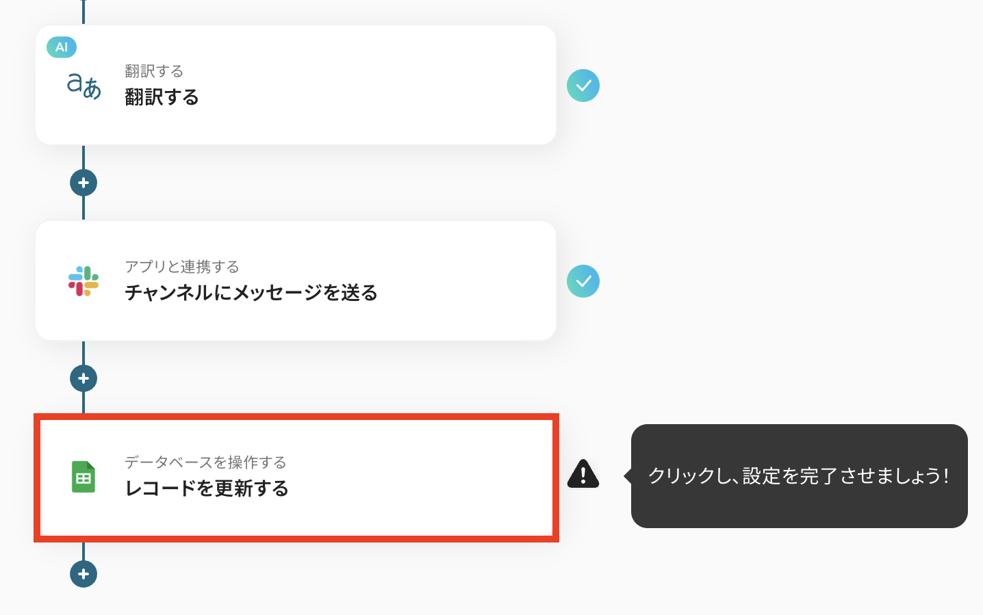 Google スプレッドシートのトリガー設定及び翻訳・Slackのアクション設定