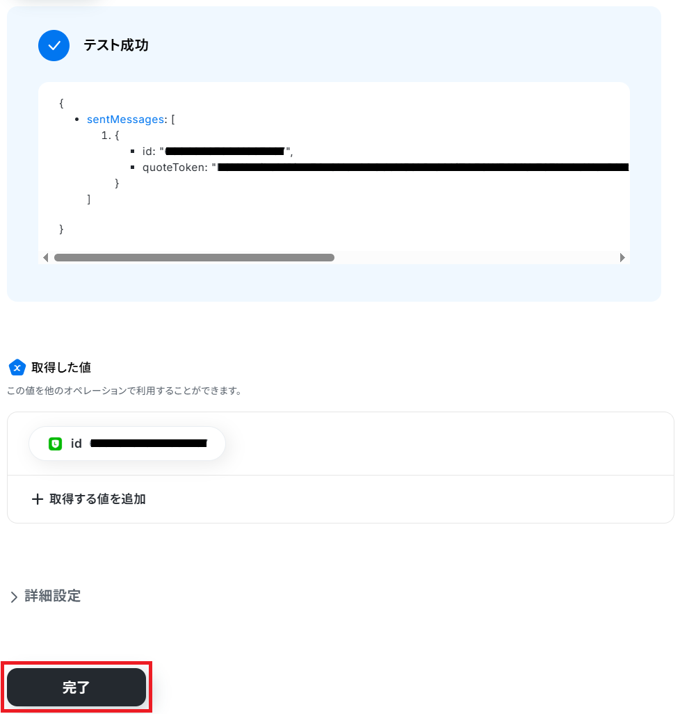 成功したら保存しましょう。ここで取得した値を次のステップで活用します。