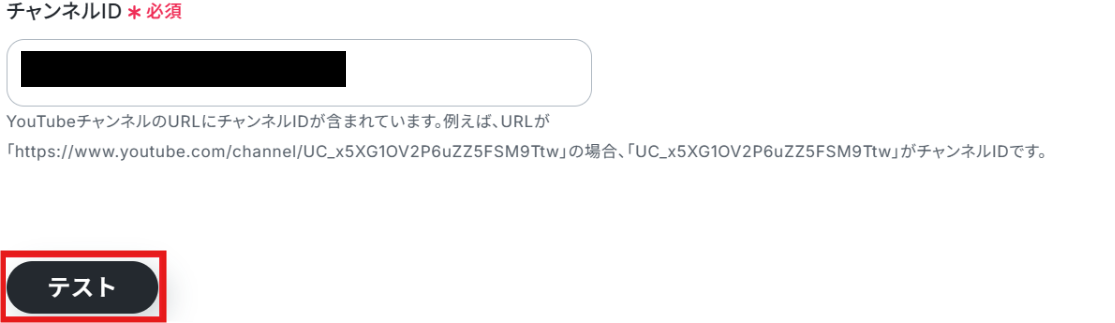 次に、連携したいチャンネルのチャンネルID を入力しテストしてください。
