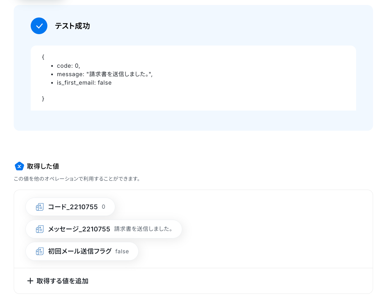請求書IDは、ステップ4の取得した値を設定しましょう!