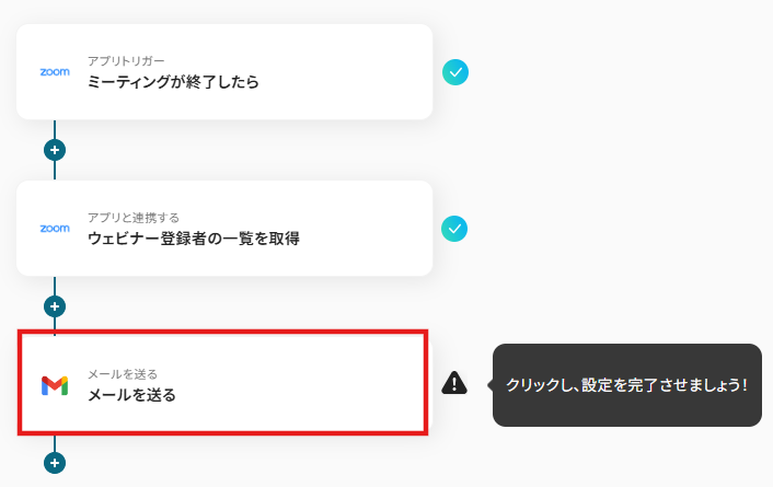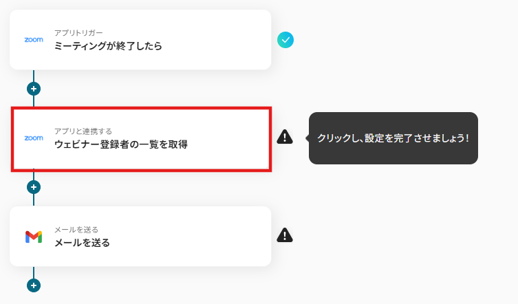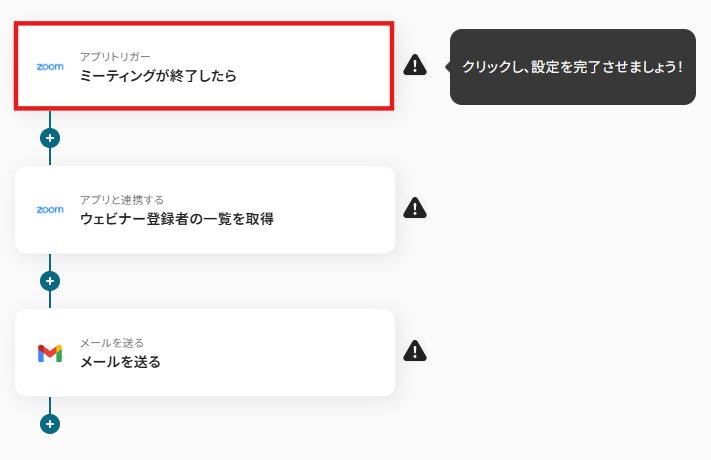 - Zoomのトリガー設定およびGmailのアクション設定