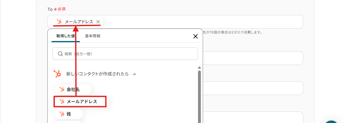 このように設定することで、HubSpotに登録された「メールアドレス」を自動でメールの宛先に設定することができますよ!