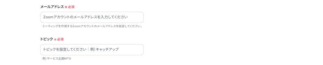 「メールアドレス」と「トピック」は枠外の注釈を参考に、任意で設定してください。