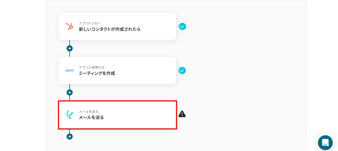 HubSpotに新しい見込み客が登録された際に、その情報を基にZoomミーティングの招待メールを自動で送信する基本的な連携フローです。