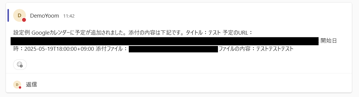 Google カレンダーに新しい予定が追加され、その予定にファイルが添付されている場合に、その添付ファイルをMicrosoft Teamsの指定したチャネルやチャットに自動で送信してくれます。
