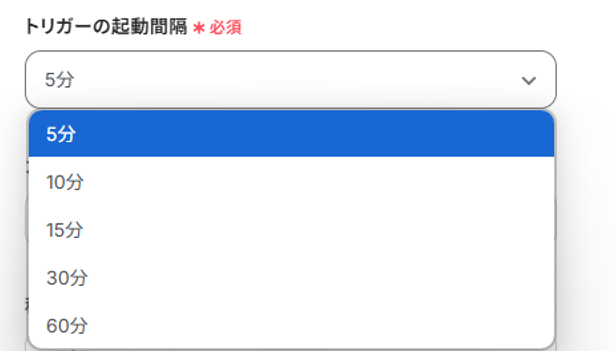 ・トリガーは5分、10分、15分、30分、60分の間隔で起動間隔を選択できます。