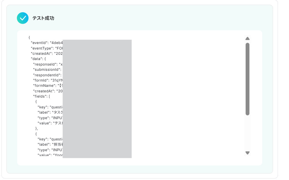設定できたら、実際にTallyでフォーム回答を行い、フローボットに戻ります。