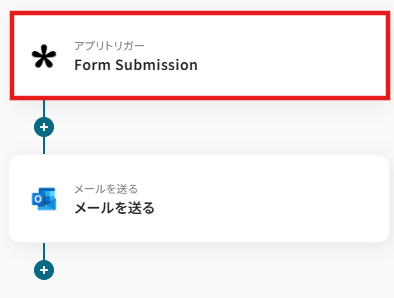 タイトルと連携するアカウント情報を任意で設定し、トリガーアクションはテンプレート通りに「Form Submission」のまま「次へ」をクリックして進んでください。
