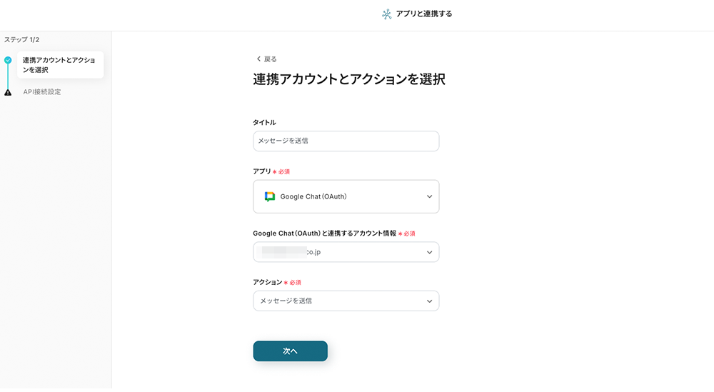 テンプレートの2つ目をクリックします。この工程では、Google Workspaceの情報を引用してGoogle Chatから任意の相手にメールを送る設定を行います。