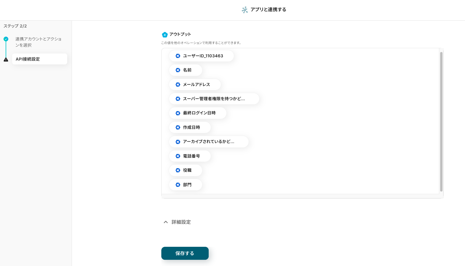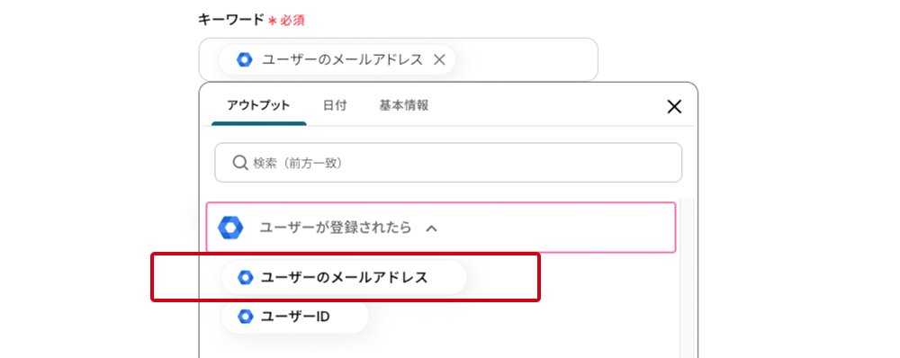 この項目と値をYoomでは「アウトプット」と定義しています。
