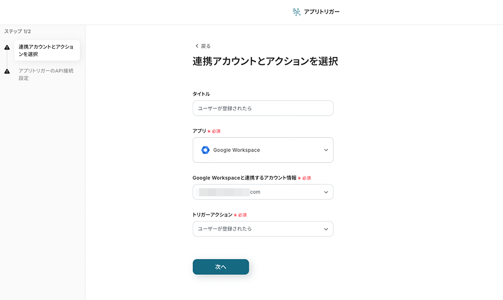 Google Workspaceでユーザーが登録されたら、Notionにも追加するフローです。