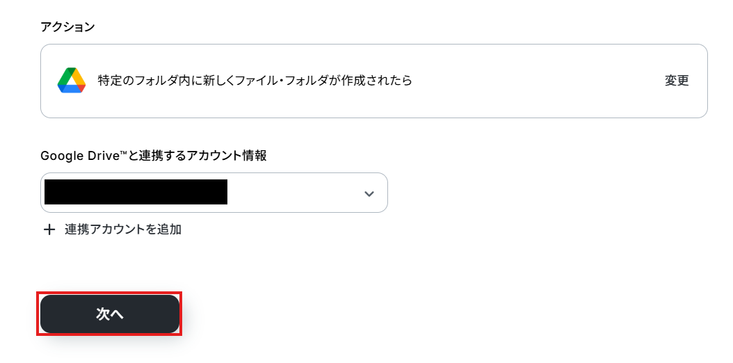 ステップ3:Google Driveのトリガー設定 まずはGoogle Driveのトリガーアクションを設定していきます。