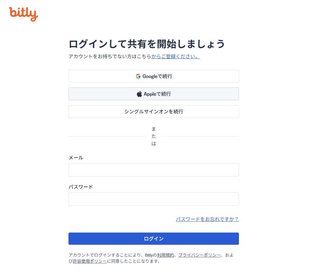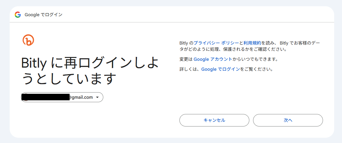 ログイン画面に遷移するので、Bitlyの連携したいアカウントでログインしてください。