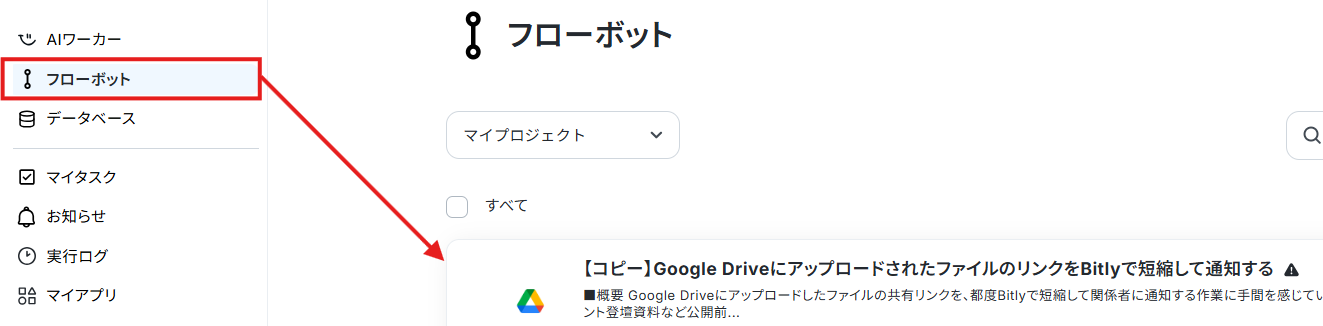 また、コピーしたテンプレートはフローボットに保存されているので、ここからも開くことができます。
