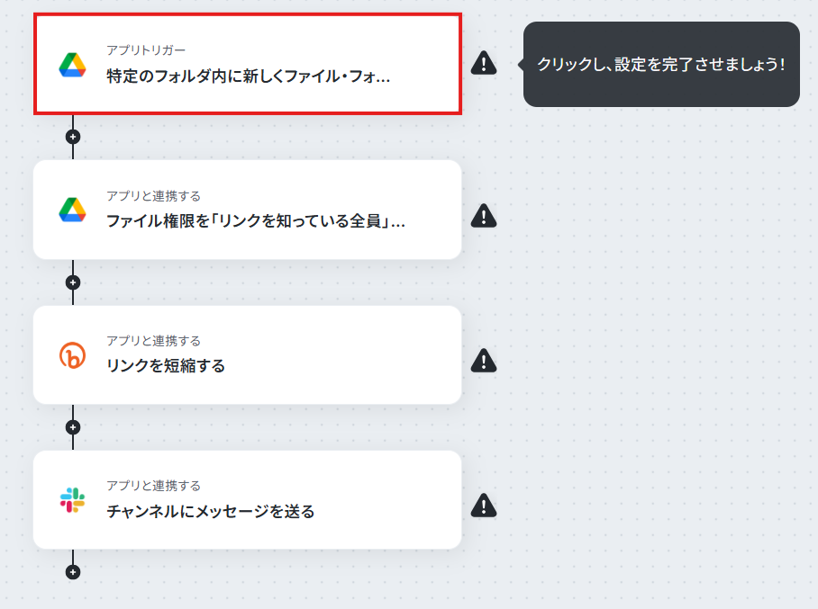フローの作成方法 今回は「Google DriveにアップロードされたファイルのリンクをBitlyで短縮して通知する」フローを作成していきます!
