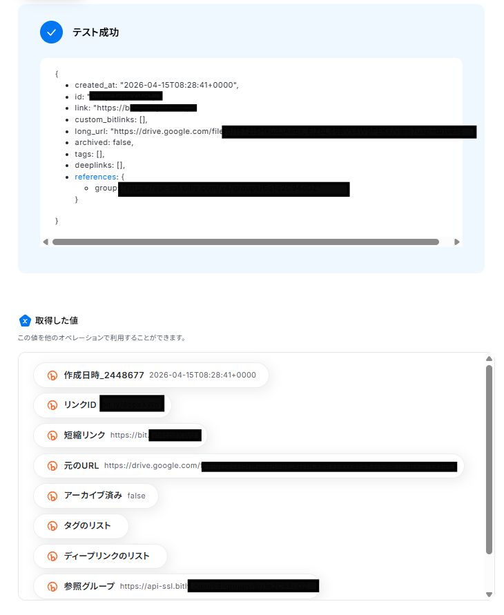 Bitlyでリンクを短縮する際に、カスタムバックハーフ(短縮URLの末尾の文字列)やタイトルなどを任意で設定できます。前段のオペレーションで取得した値を埋め込むことも可能です。 Googleドキュメントにテキストを追加する際に、生成された短縮URLの前後に「短縮URL:」などの固定テキストを追記するよう設定できます。 ■注意事項