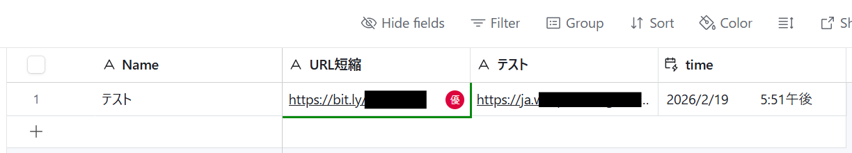 AirtableにURLが追加されたら、Bitlyでリンクを短縮し反映する