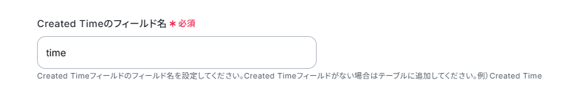 「ベースID」、「テーブルID」、「Created Timeのフィールド名」を画面注釈通り入力してください。