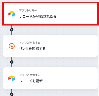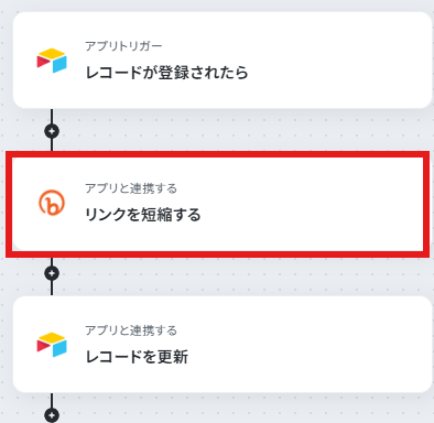 はじめに、AirtableとBitlyをYoomと連携します 次に、トリガーでAirtableを選択し、「レコードが登録されたら」というアクションを設定します 次に、オペレーションでBitlyを選択し、「リンクを短縮する」アクションを設定し、Airtableで取得したURLを指定します 最後に、オペレーションでAirtableを選択し、「レコードを更新」アクションで、Bitlyで生成された短縮URLを任意のフィールドに反映させます ※「トリガー」:フロー起動のきっかけとなるアクション、「オペレーション」:トリガー起動後、フロー内で処理を行うアクション■このワークフローのカスタムポイント