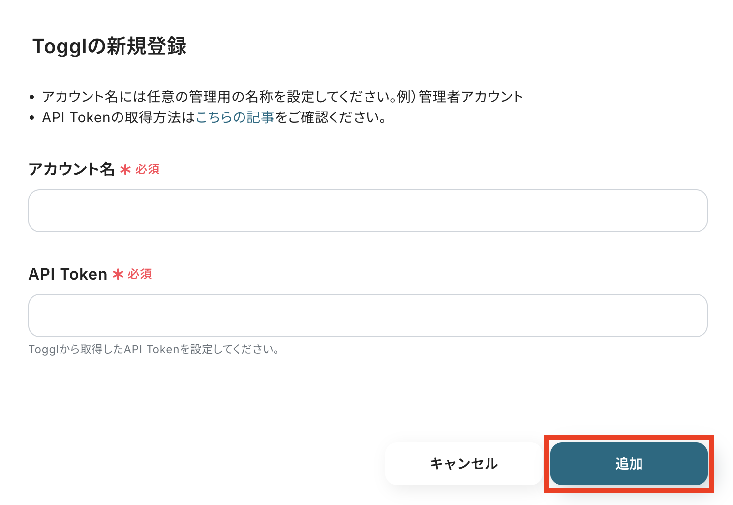 アカウント名とAPI Tokenを記入して「追加」ボタンを押します。