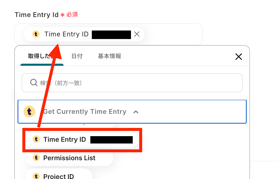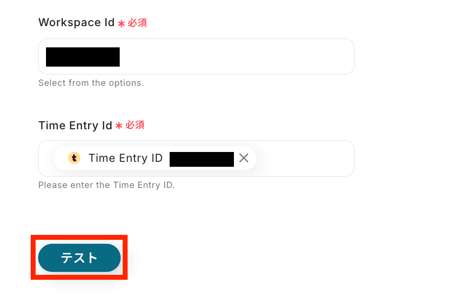 Time Entry IDも同様に候補の中から選択しましょう!