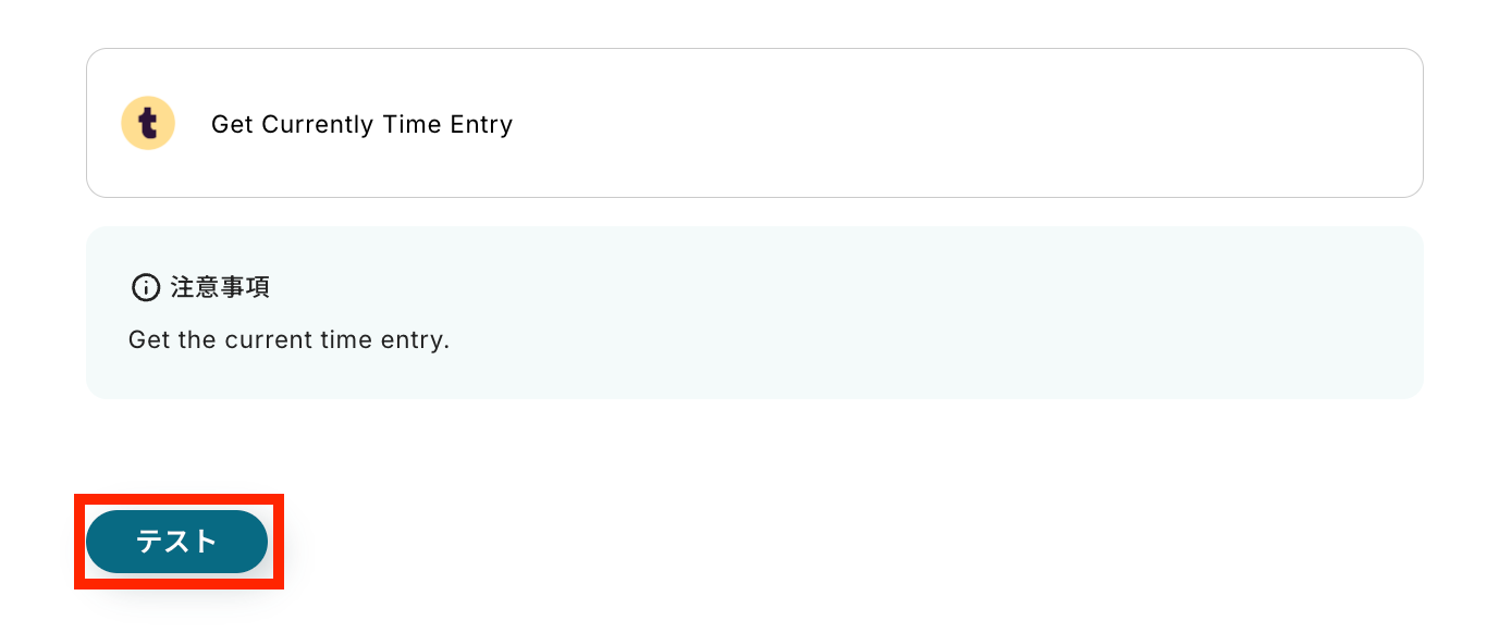 テスト成功という表示がされたら、TogglでTime Entryが停止されています。