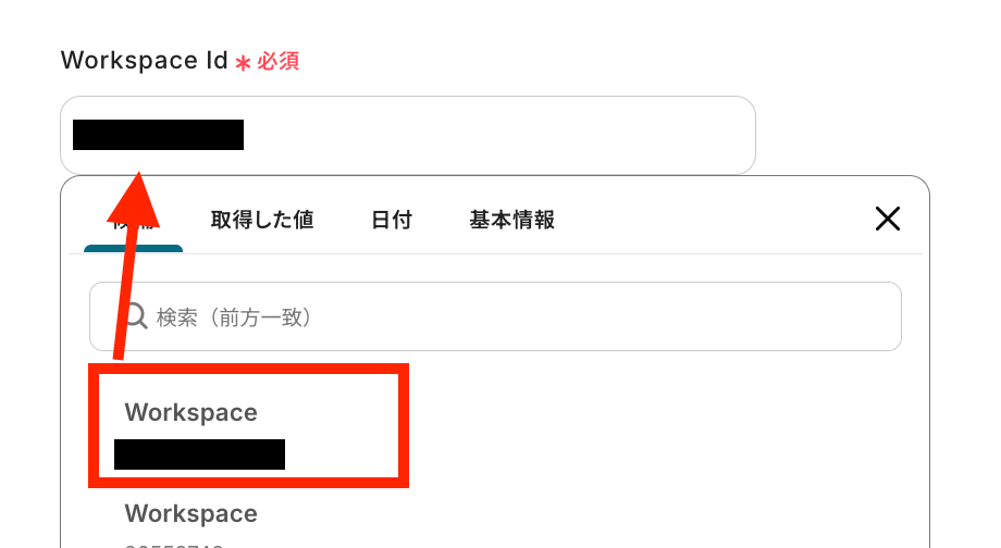 Workspace IDを設定します。表示された候補の中から選択しましょう!