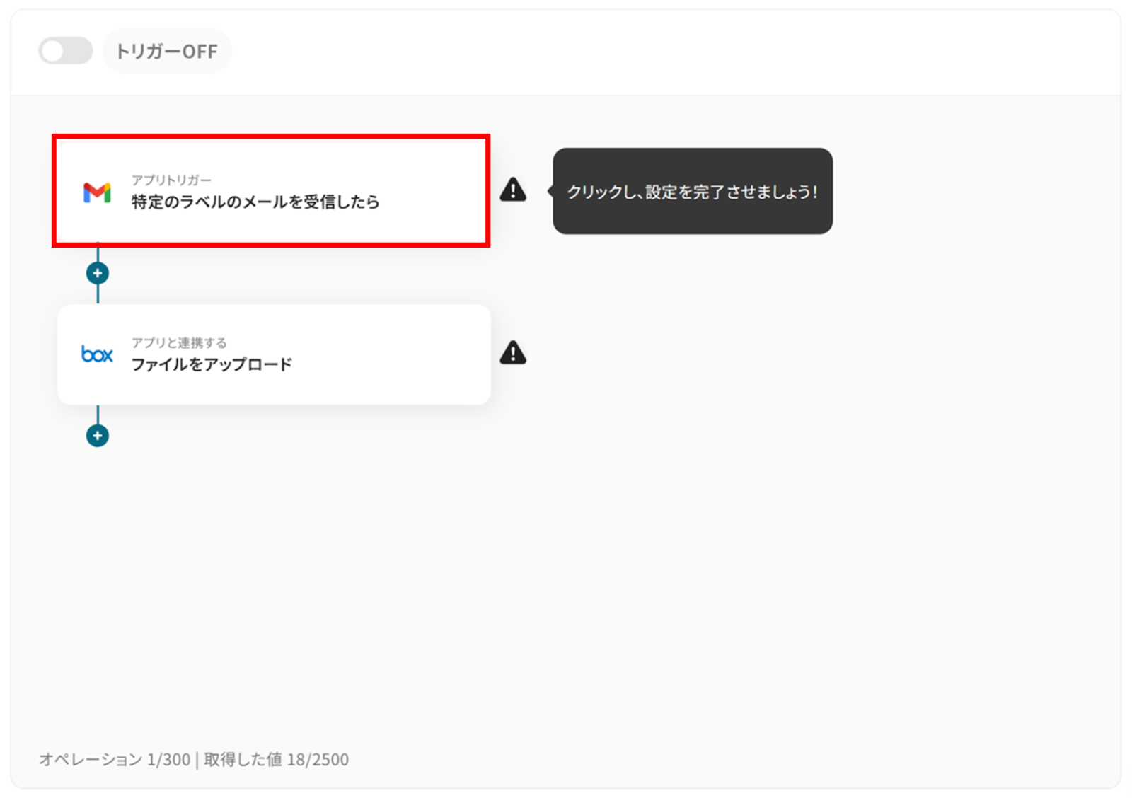 アプリトリガーの「特定のラベルのメールを受信したら」をクリックしましょう。