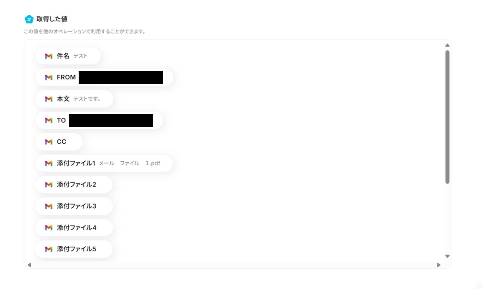 Gmailの情報が「取得した値」に反映されればテスト成功です。